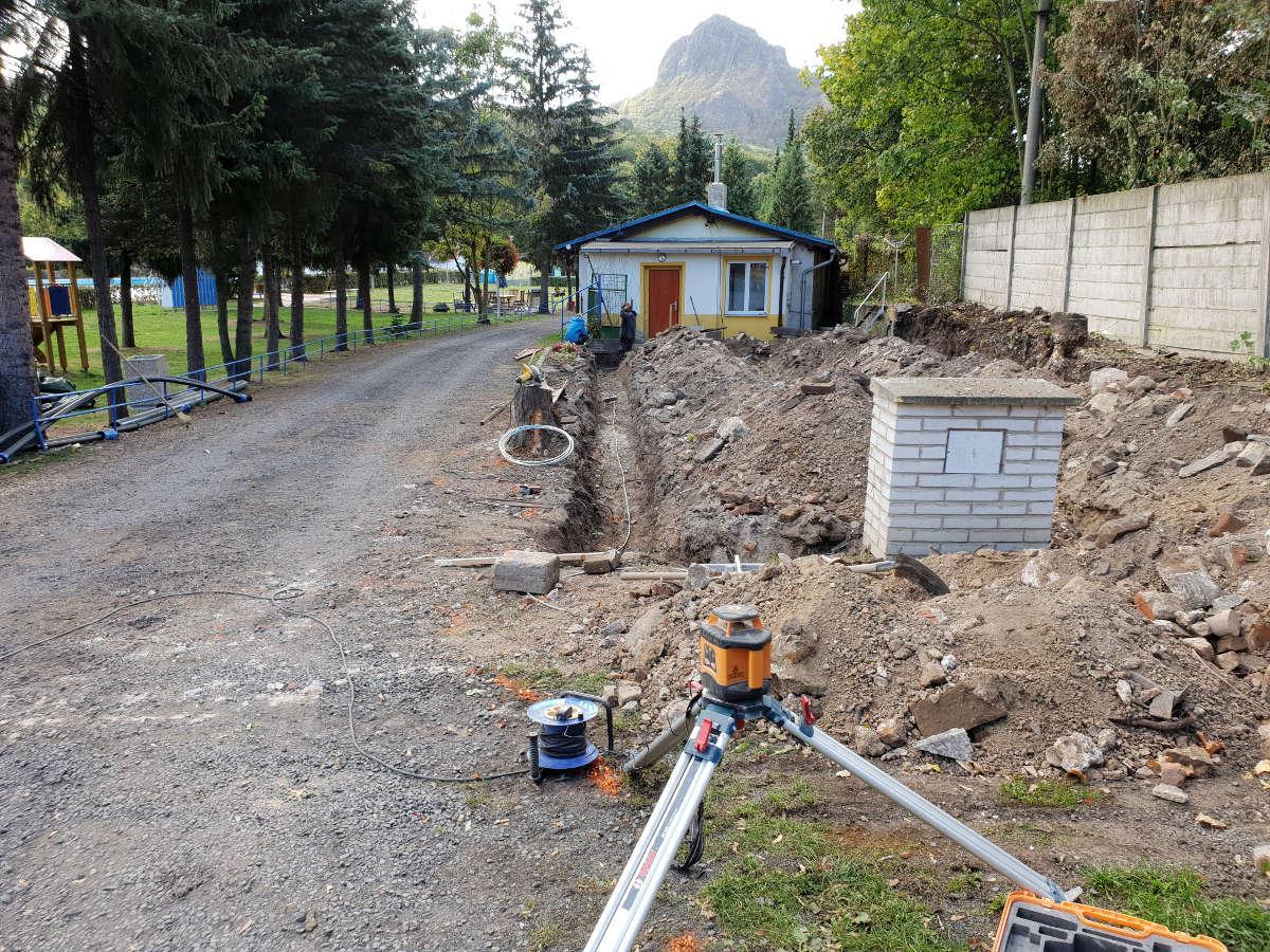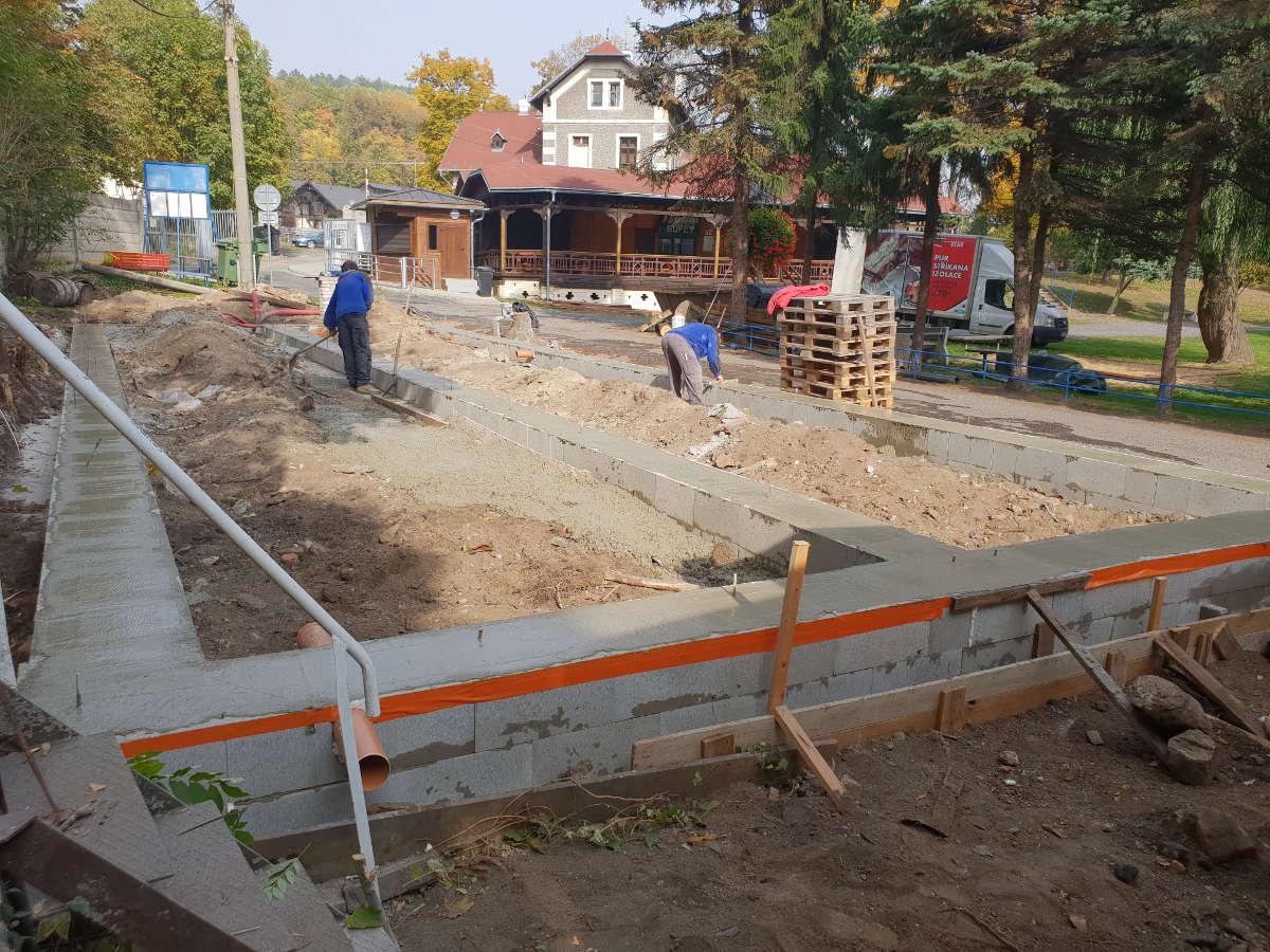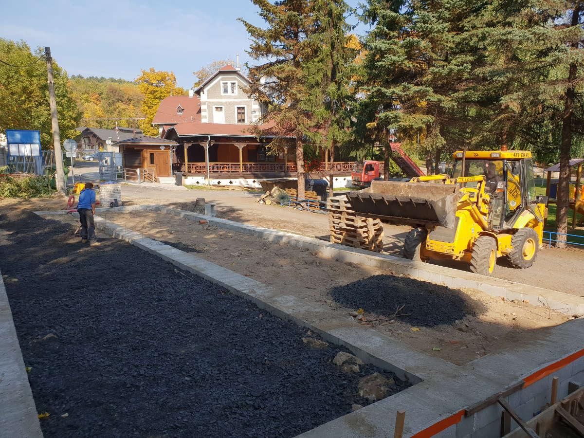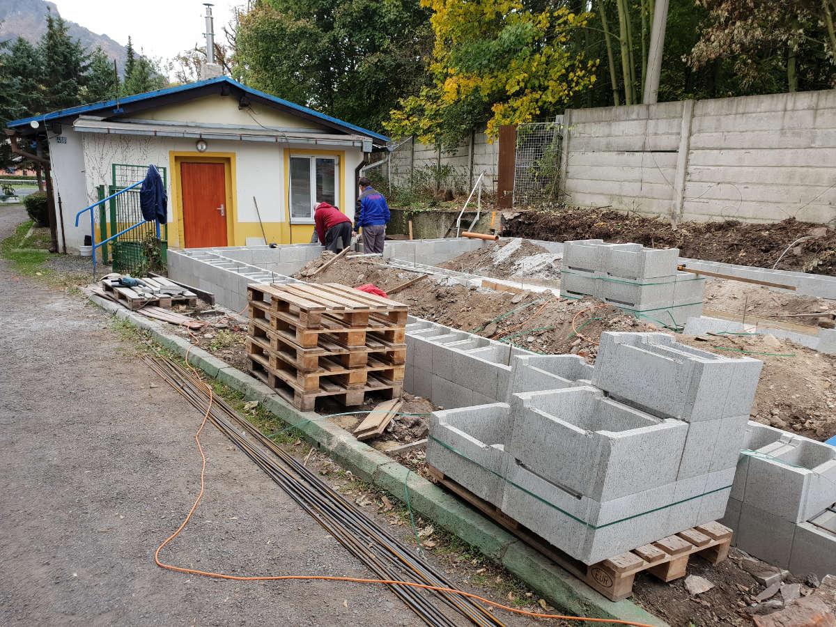 Nejprve proběhla likvidace původního objektu převlékáren, včetně jejich základů. Následně bylo budoucí umístění objektu vytyčeno geodetem a po vzájemném odsouhlasení se zástupcem Investora proběhly výkopové práce.