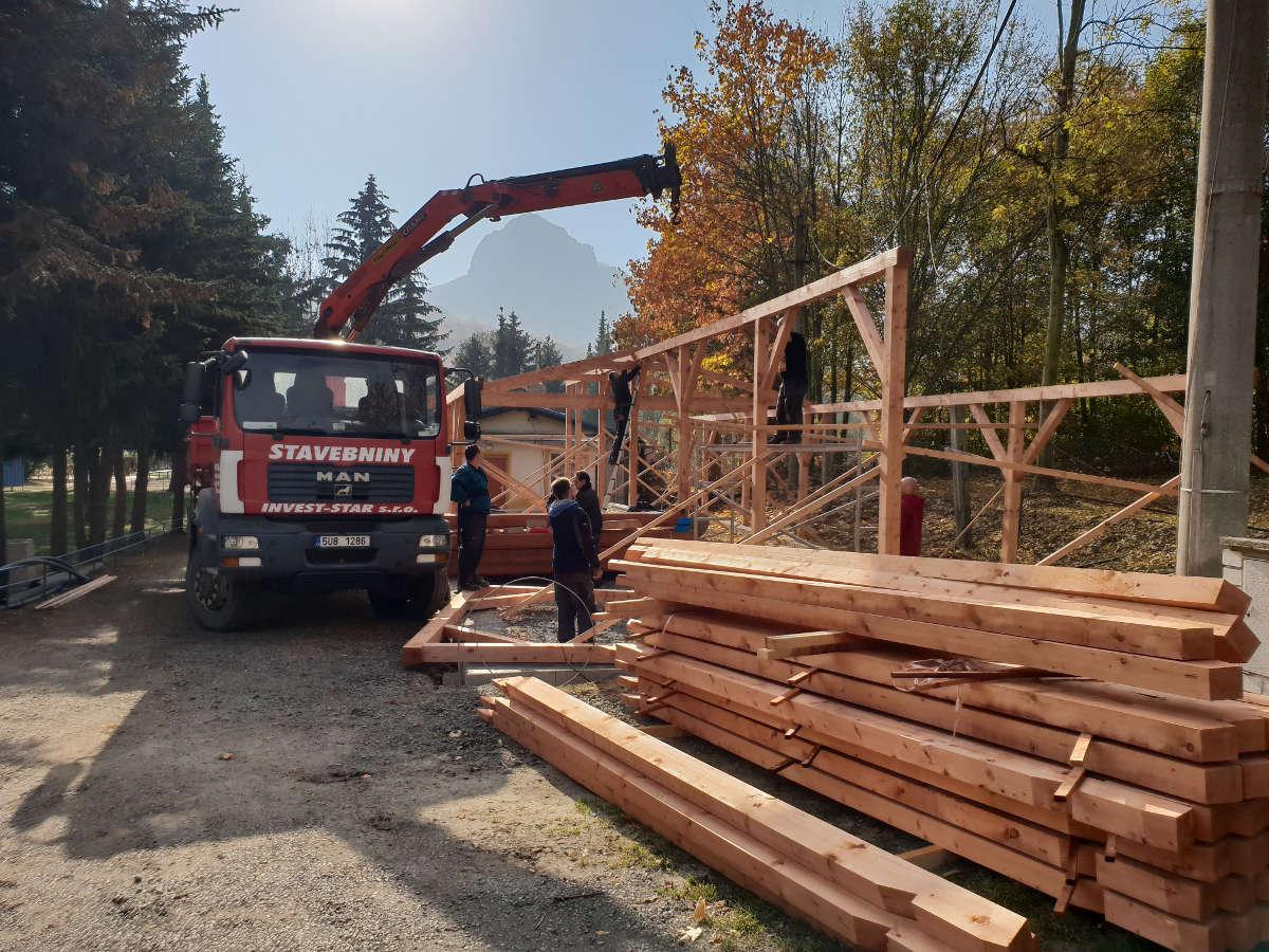 Nosné konstrukce byly vytvořeny z dřevěných hranolů, profilů 140/140, 100/100, 160/200 a 100/200 mm, které najdete na našem eshopu.