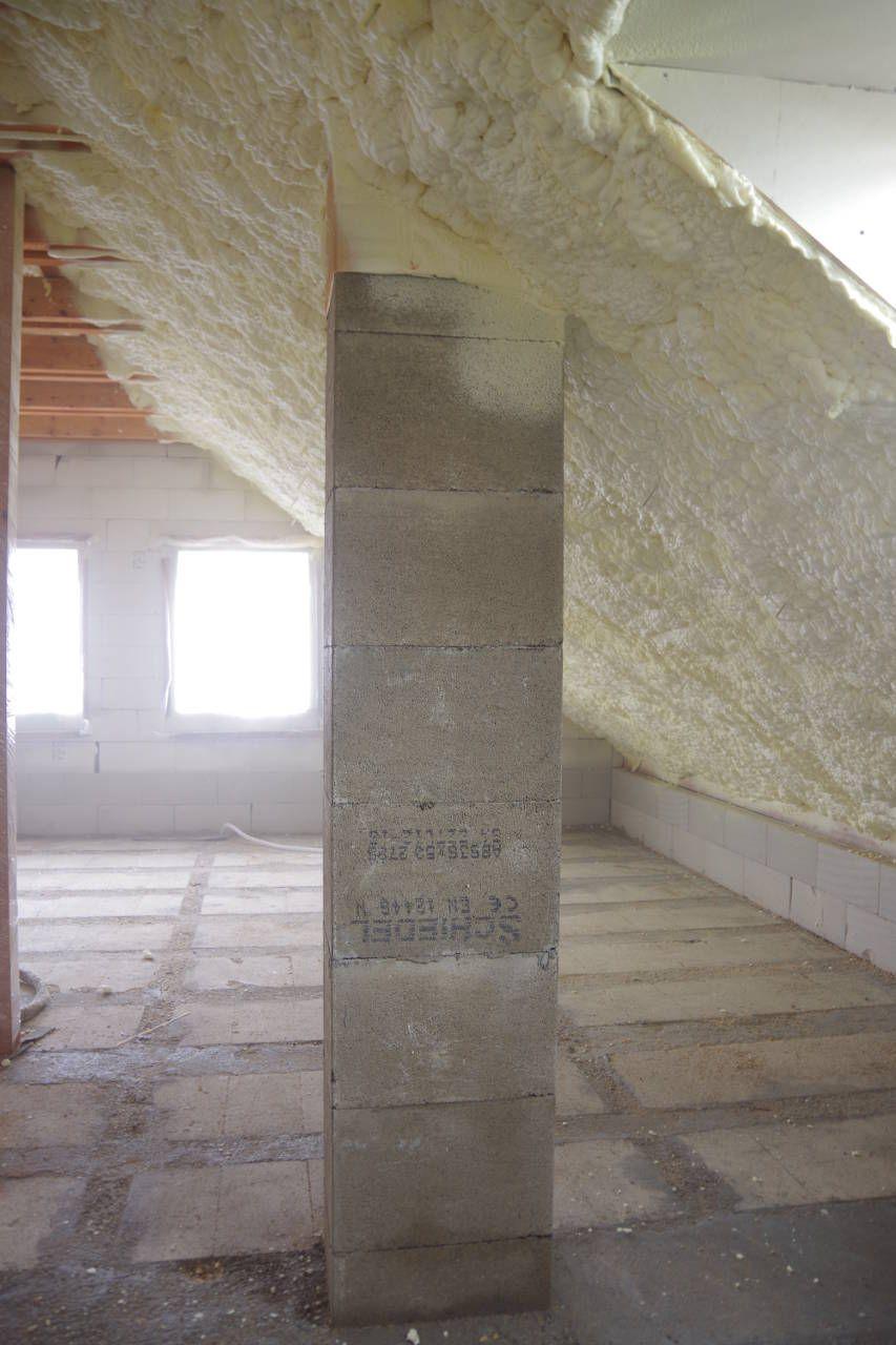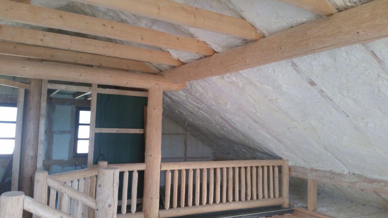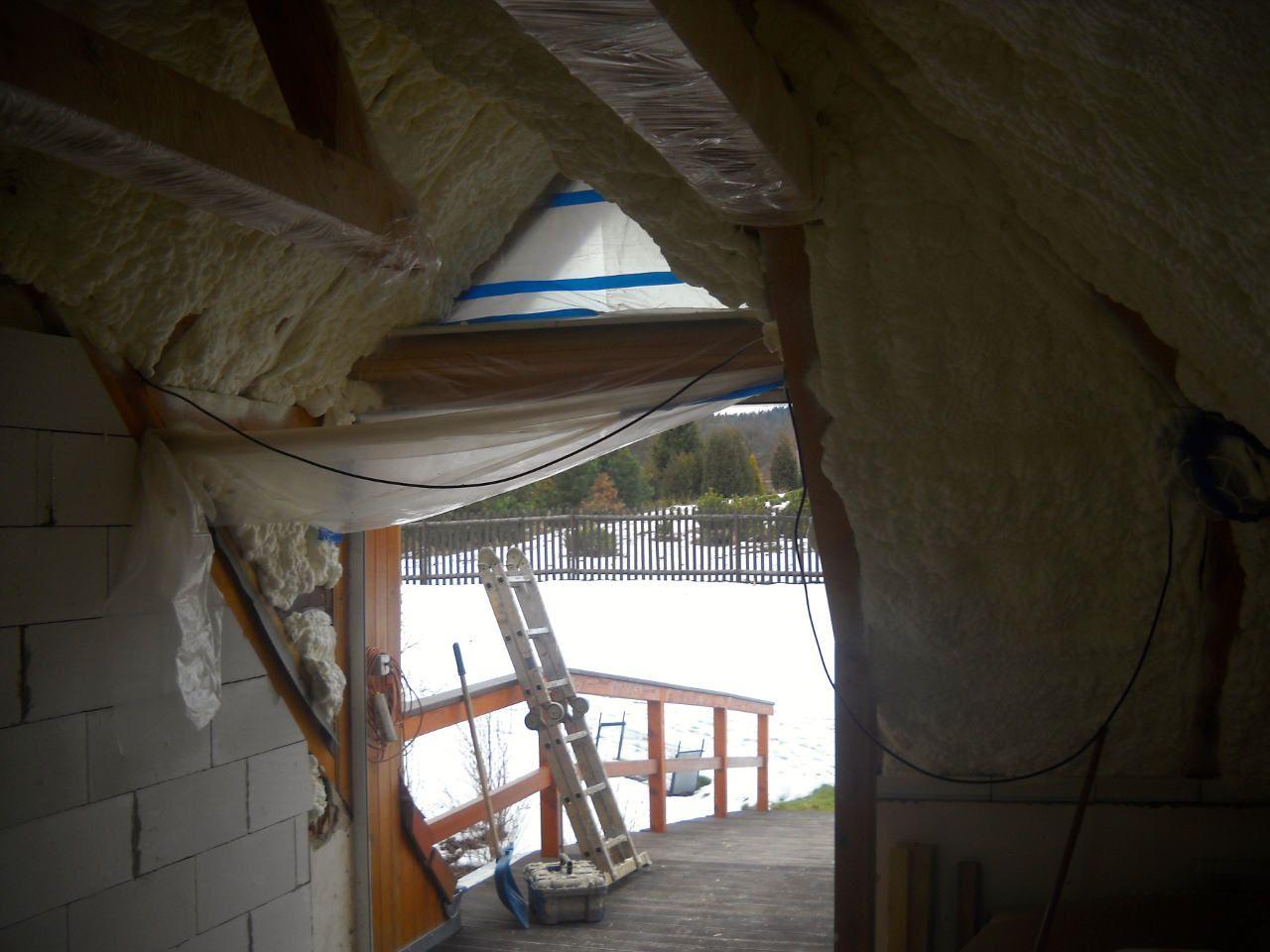 Realizace izolace podkroví měkkou pěnou S 500 o rozloze 55 metrů čtverečních. Podkroví splňuje standardní normu zateplení. Síla nástřiku 160 mm odpovídá cca 24 cm vaty.