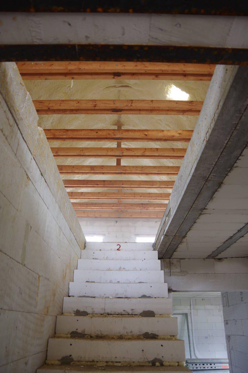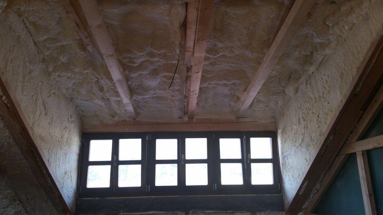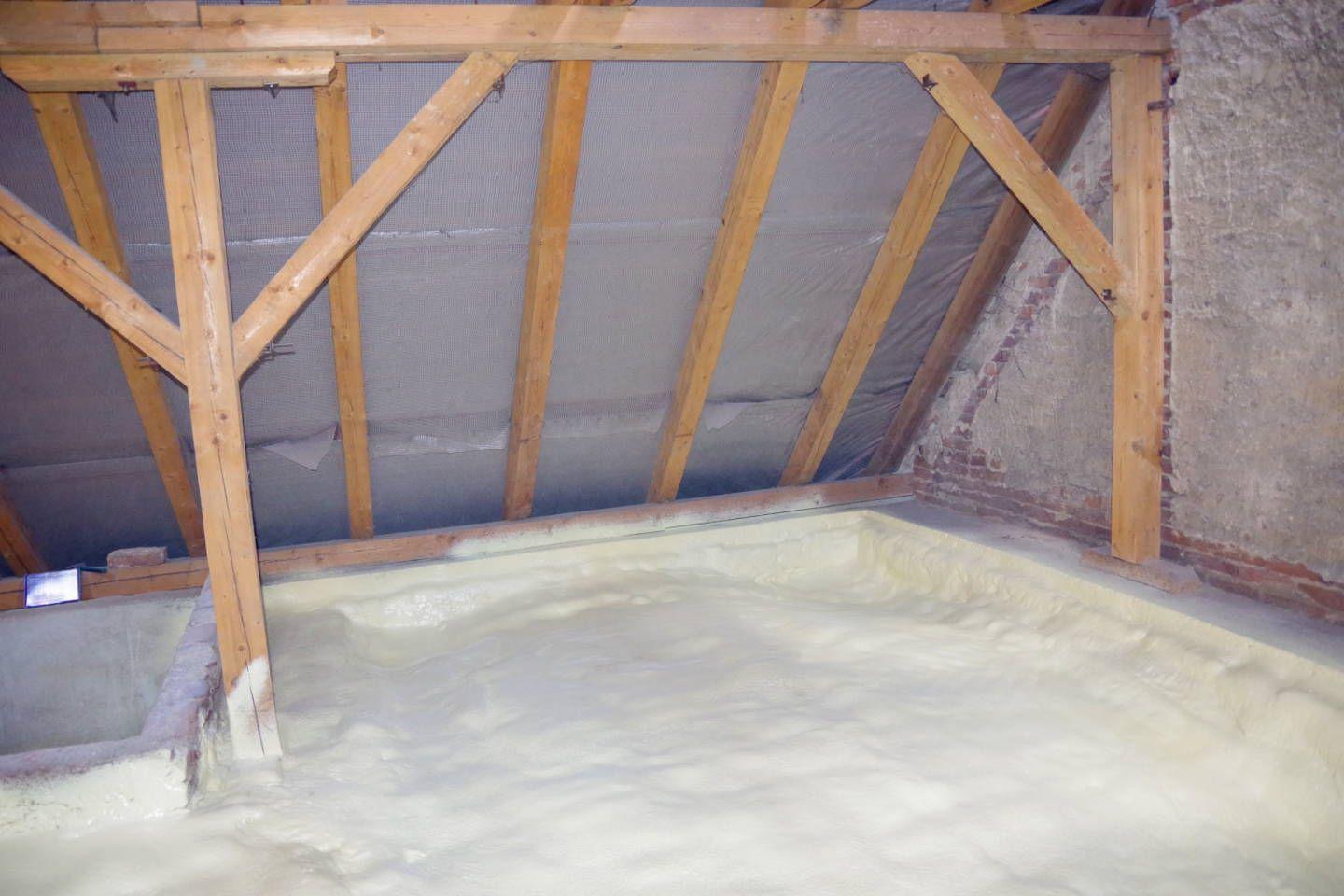 Realizace izolace podkroví měkkou pěnou S 500 o rozloze 55 metrů čtverečních. Podkroví splňuje standardní normu zateplení. Síla nástřiku 160 mm odpovídá cca 24 cm vaty.