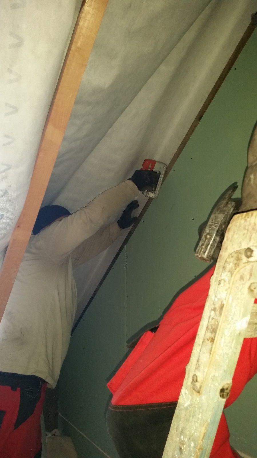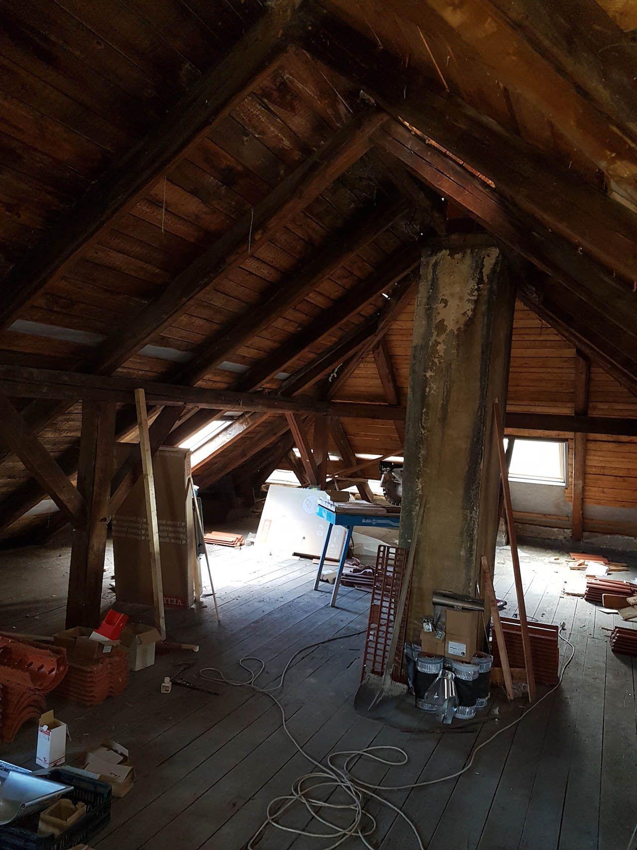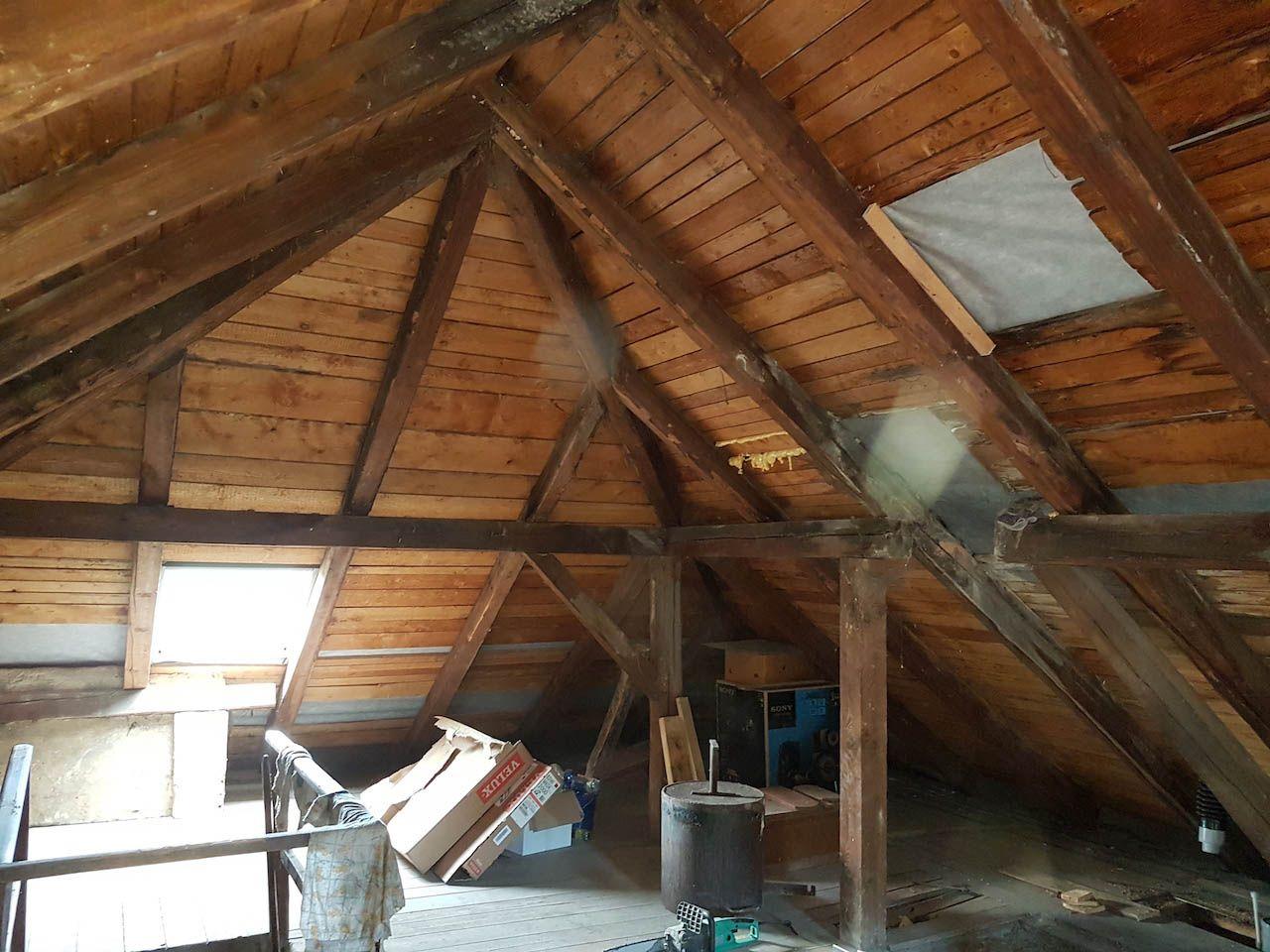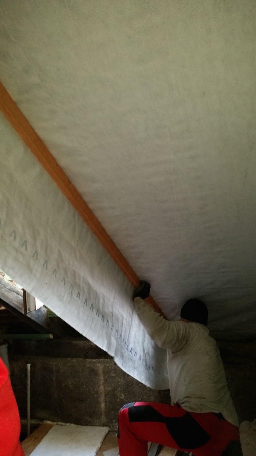 Realizace izolace staršího podkroví. Provedli jsme dodatečnou montáž folie pro izolaci starých krovů pěnou.