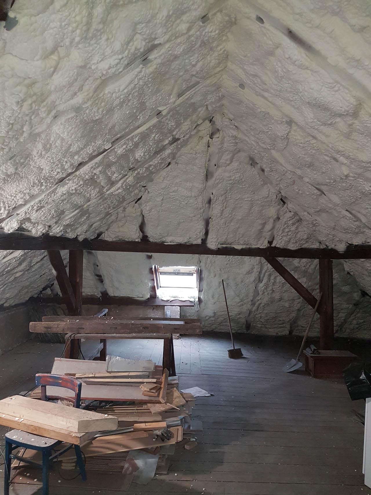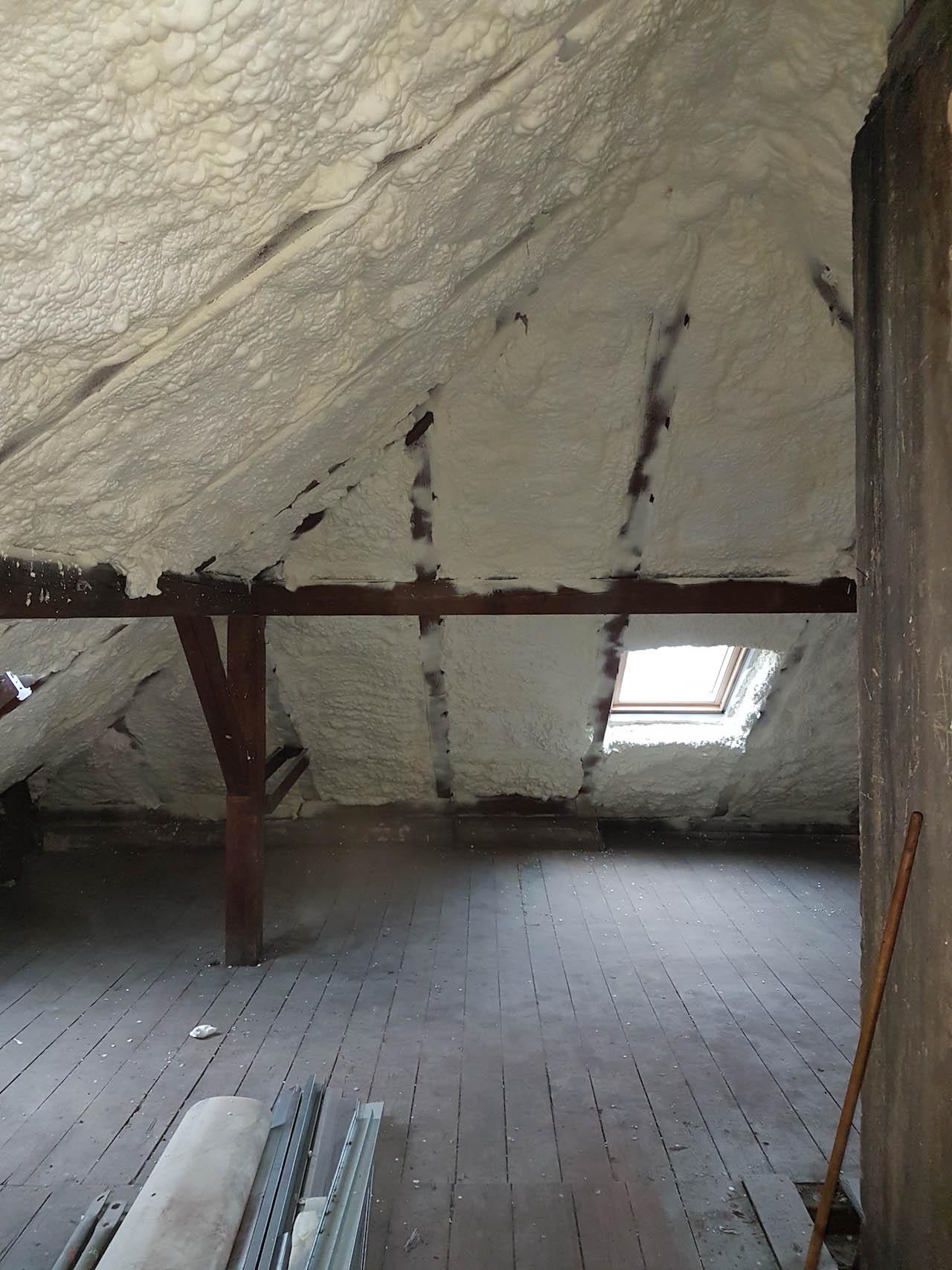 Aplikace PUR pěny v podkroví rodinného domu