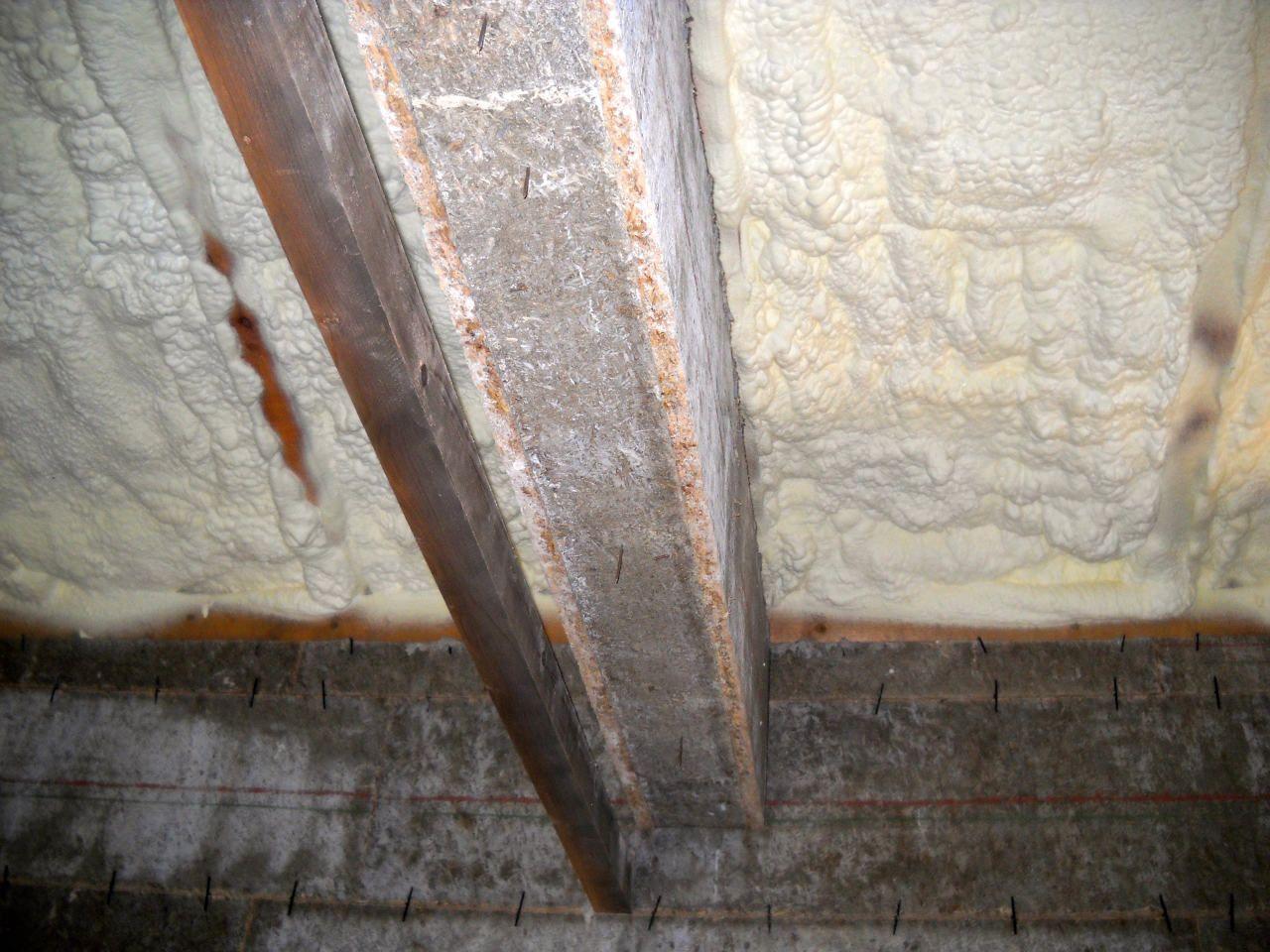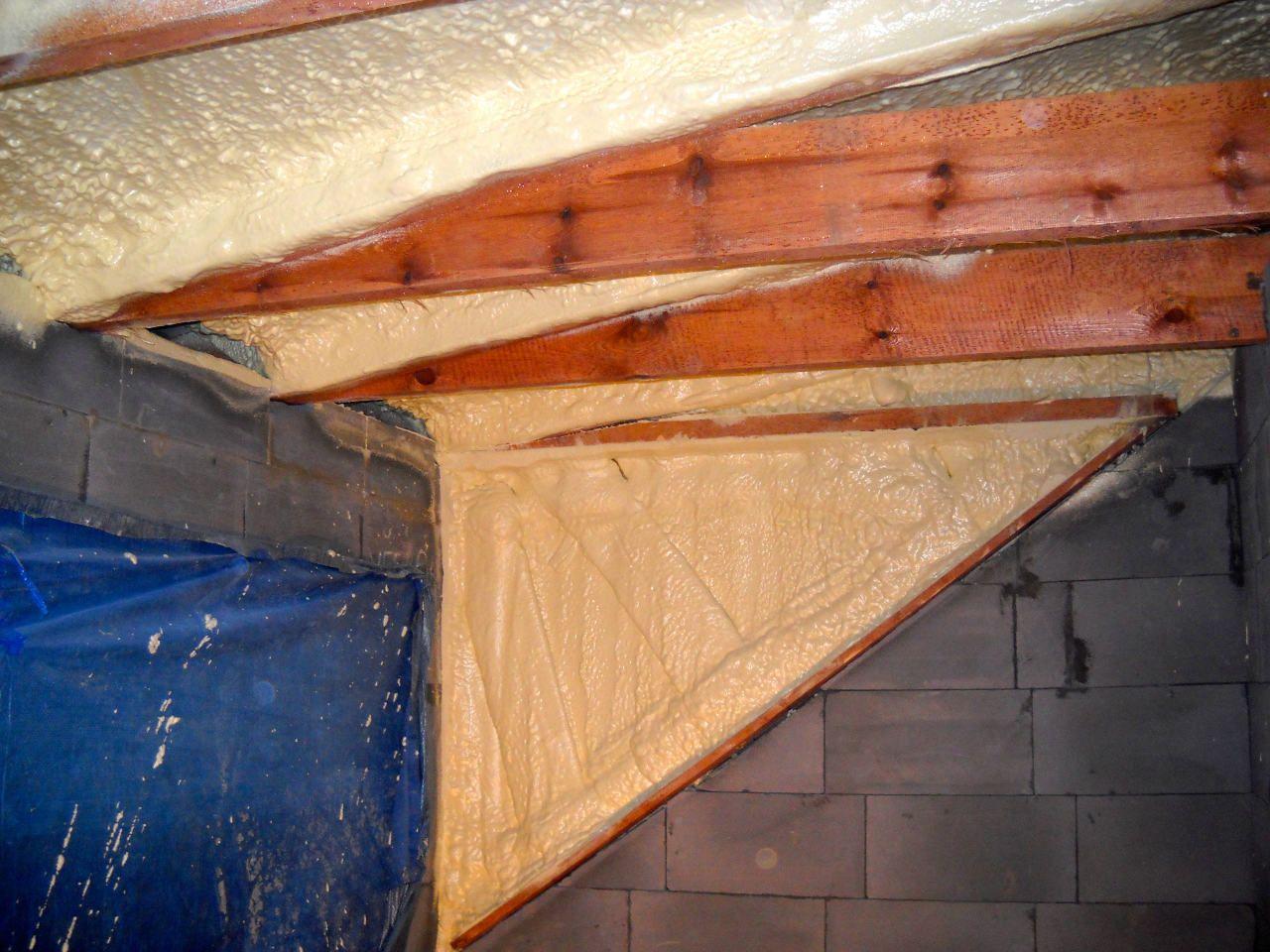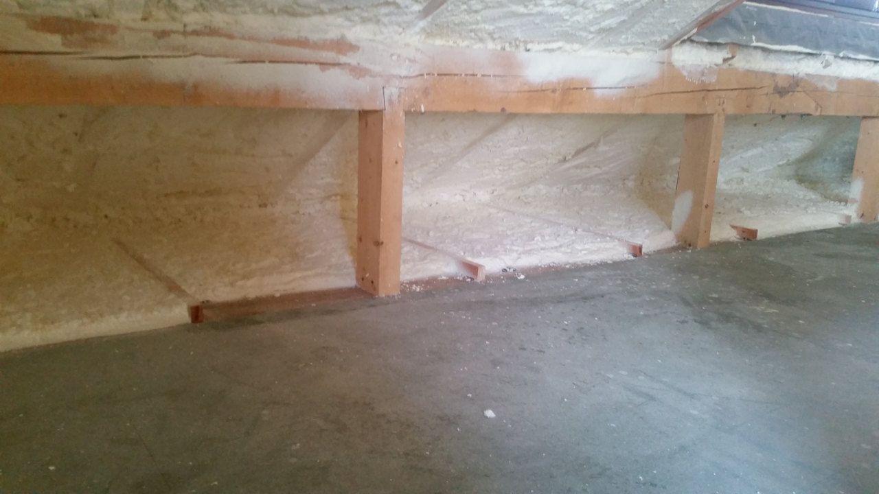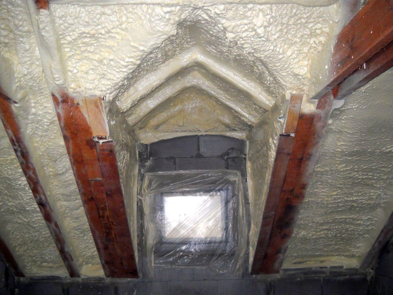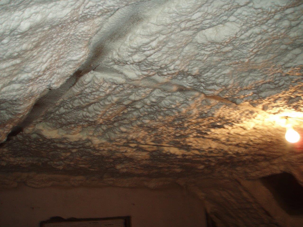 Aplikace stříkané pěny EKO S 500 na objektu starší dvoupatrové vily, kde docházelo k velkému úniku tepla. Jedná se o nástřik přímo na dřevěné bednění,kde naše pěna je k tomuto materiálu šetrná z hlediska otevřené difuze izolantu. Nedochází tudíž zde k výskytu plísní na podkladu (dřevo). Celý izolovaný prostor podkroví je tak vzduchotěsně uzavřen, ale přesto dýchá, což je podstata moderní technologie zateplování.