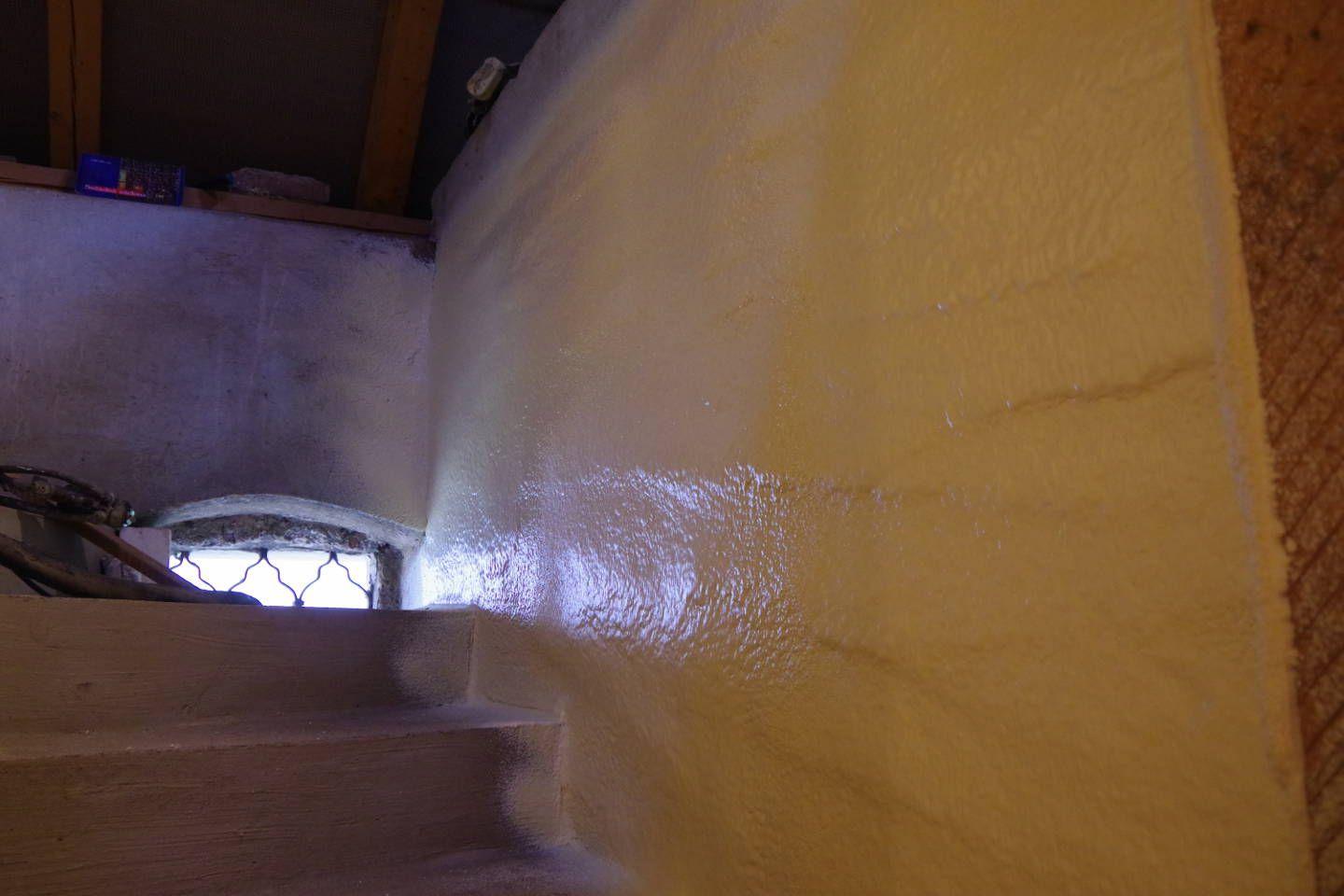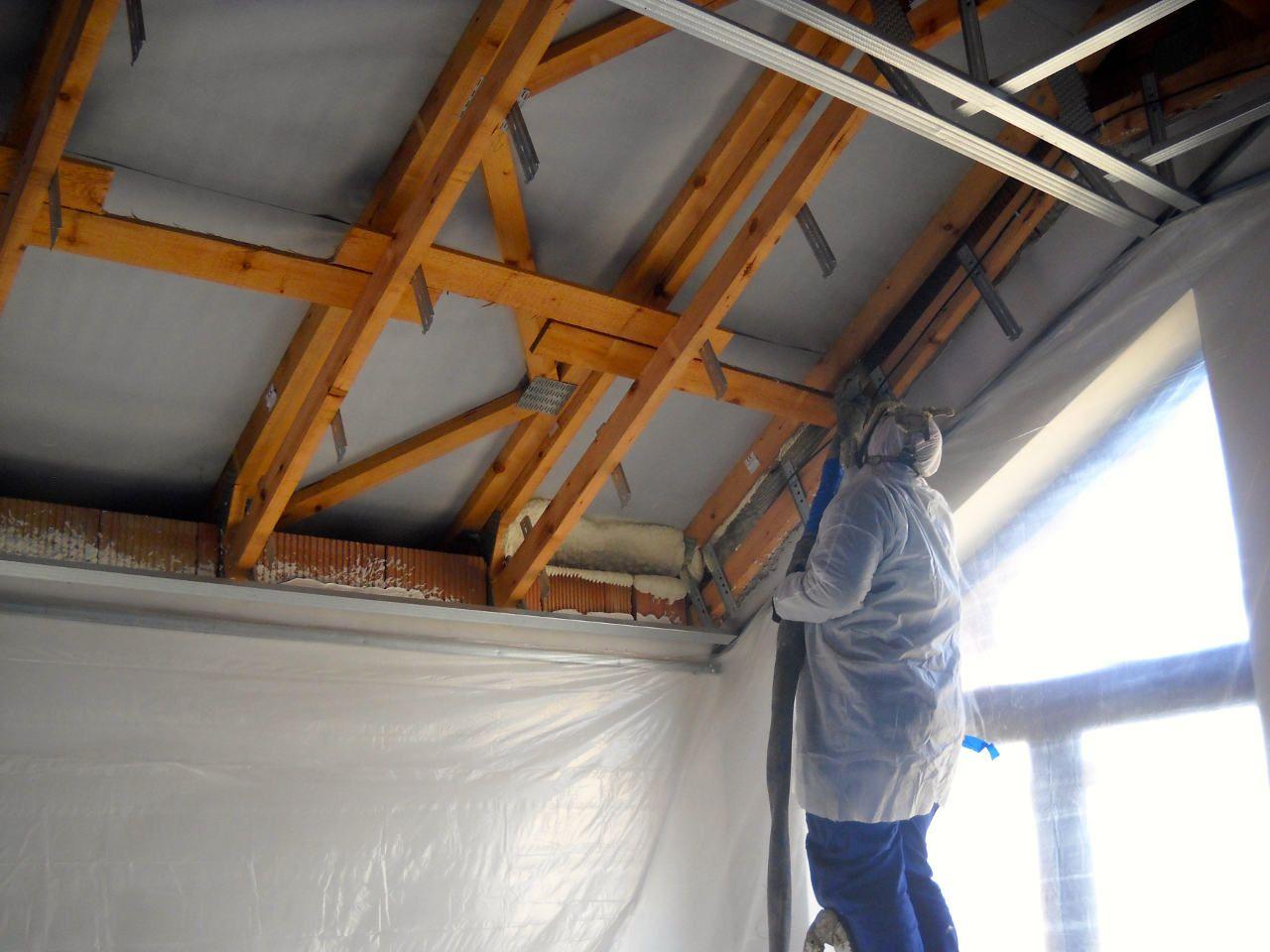 Realizace zateplení a hydroizolace podkroví domu v Bělé pod Bezdězem. Podkroví splňuje normu zateplení pasivního domu. Síla nástřiku 200 mm odpovídá cca 40 cm EPS polystyrenu.