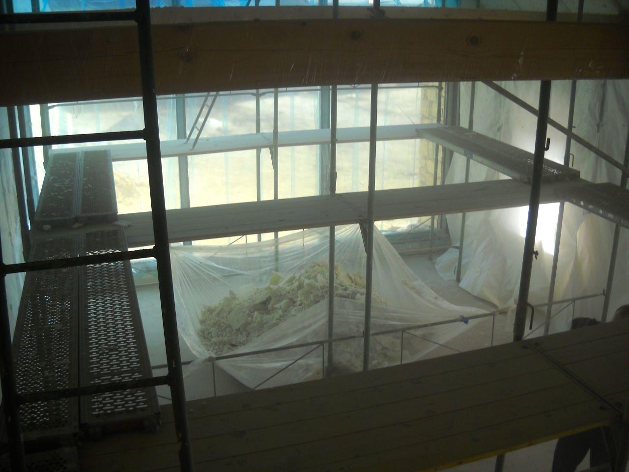 Použili jsme technologii pomocných příložných desek, které sloužily k docílení naprosté rovinatosti povrchu. Tato varianta se používá v případech, kdy má zákazník požadavek na co nejmenší zmenšení interiérového prostoru při maximální síle izolantu. Tento postup je samozřejmě časově náročnější a pracnější.