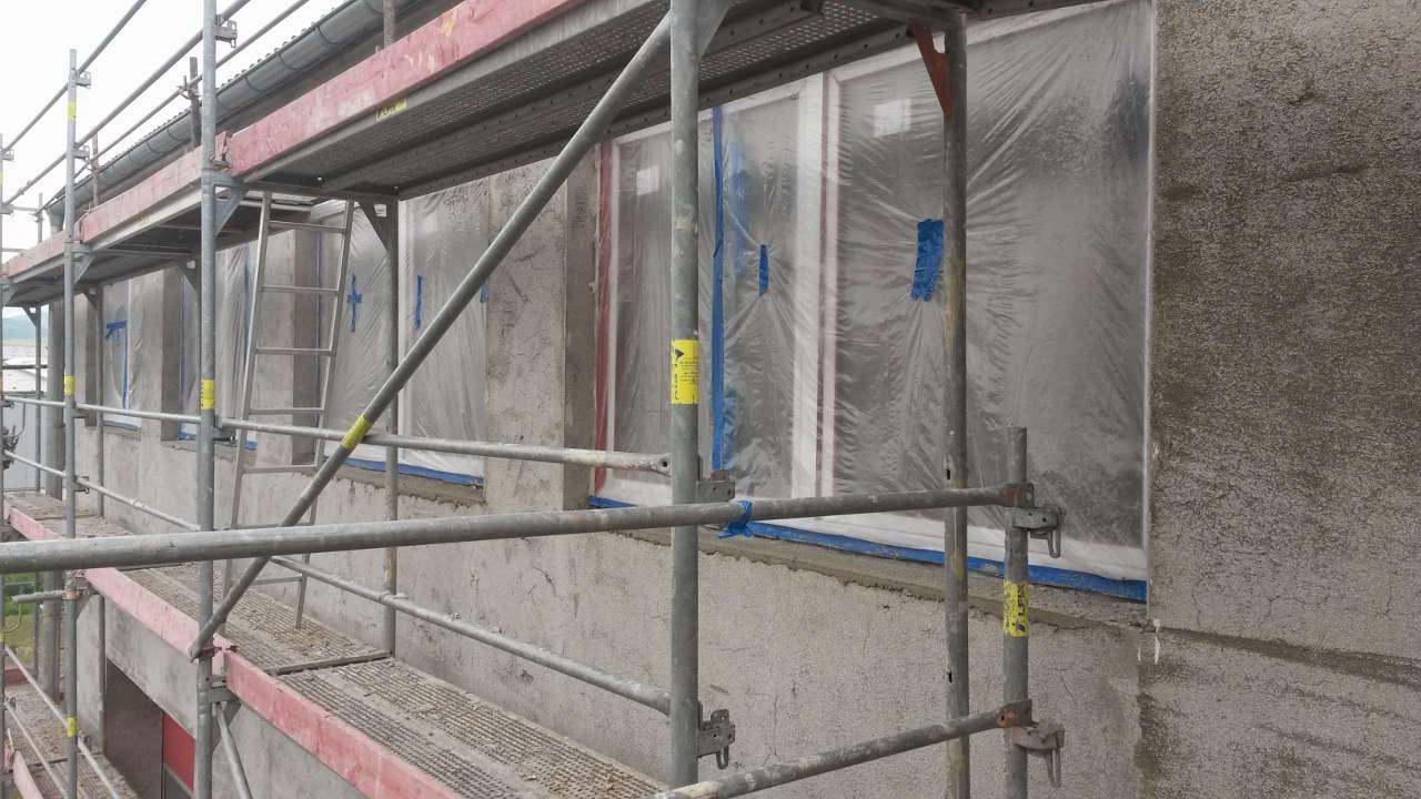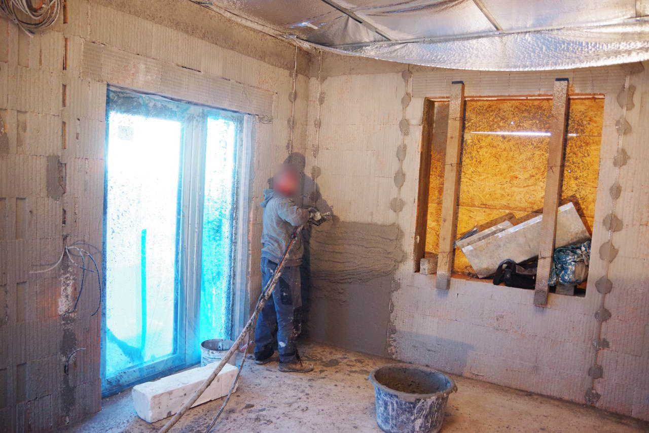 Jelikož se naše společnost specializuje také na omítky, tak nás zákazník požádal o vypracování cenové nabídky na jádrovou omítku pro novostavbu (jak v interieru, tak v exterieru). Cenová nabídka byla pro investora přijatelná a naše reference též, tak jsme vyhráli výběrové řízení a práce mohli započít. Začali jsme přípravnými pracemi (zakrývání otvorů, instalace omítníků). Dále byla omítka aplikována a zarovnána podle omítníků. Zároveň byla aplikována i omítka na špaletách a nakonec uhlazena. Po těchto krocích se omítka nechala vyzrát, aby na ni bylo možné dále aplikovat další vrstvy.