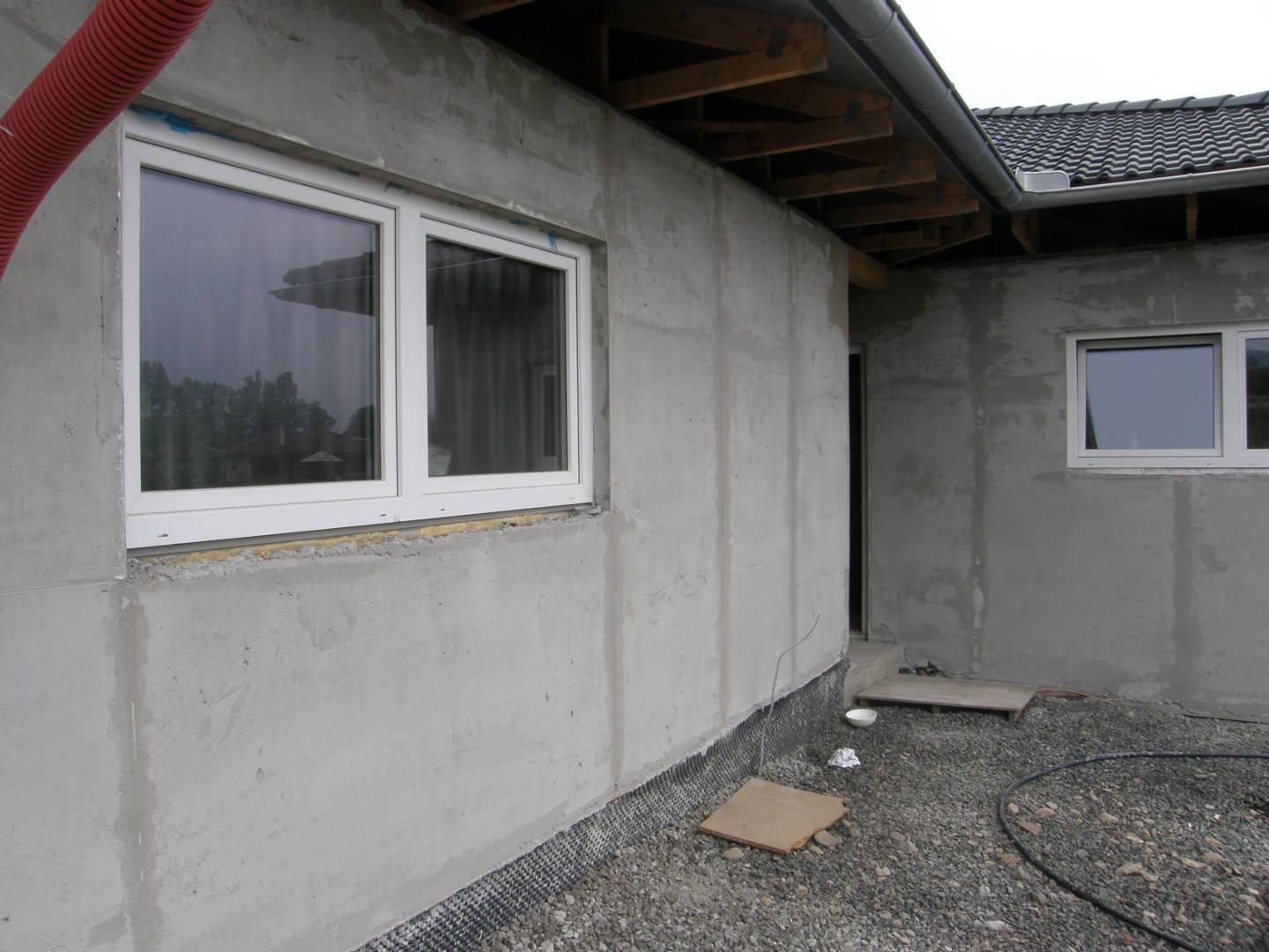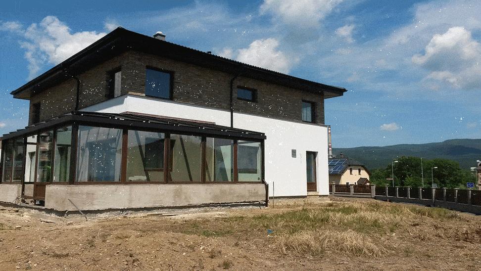 Zateplení fasády (větrané) na pasivním rodinném domu.