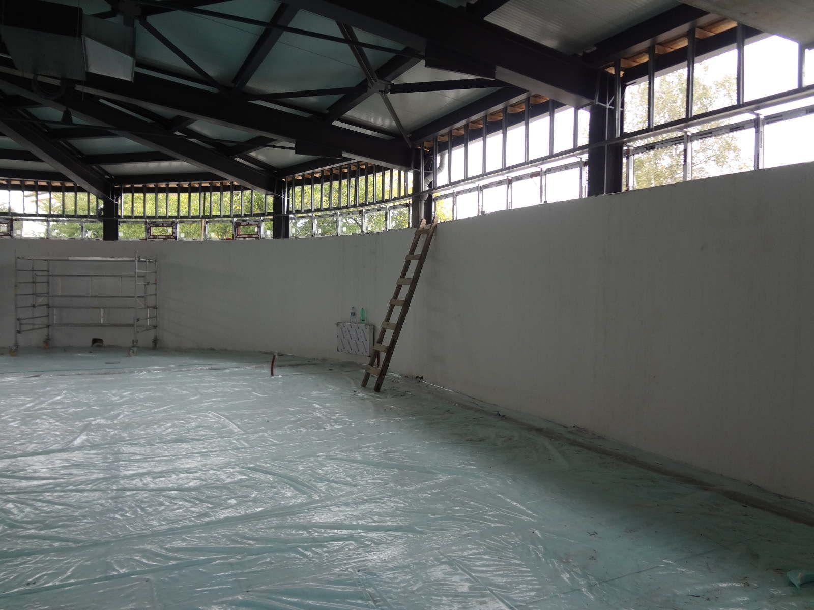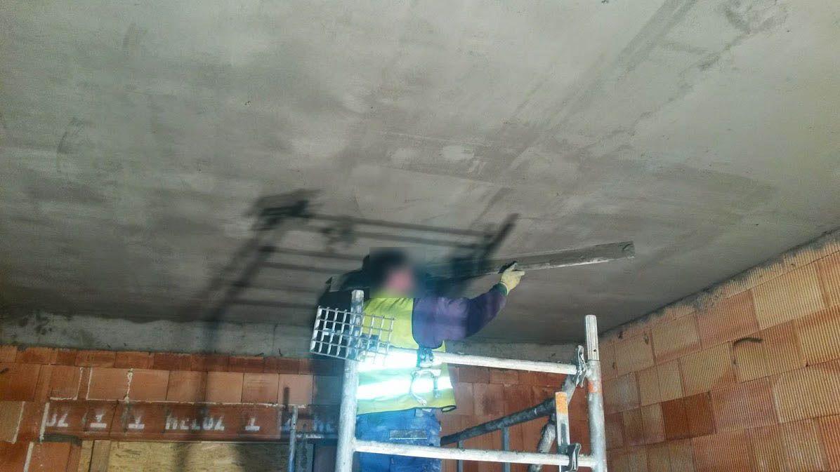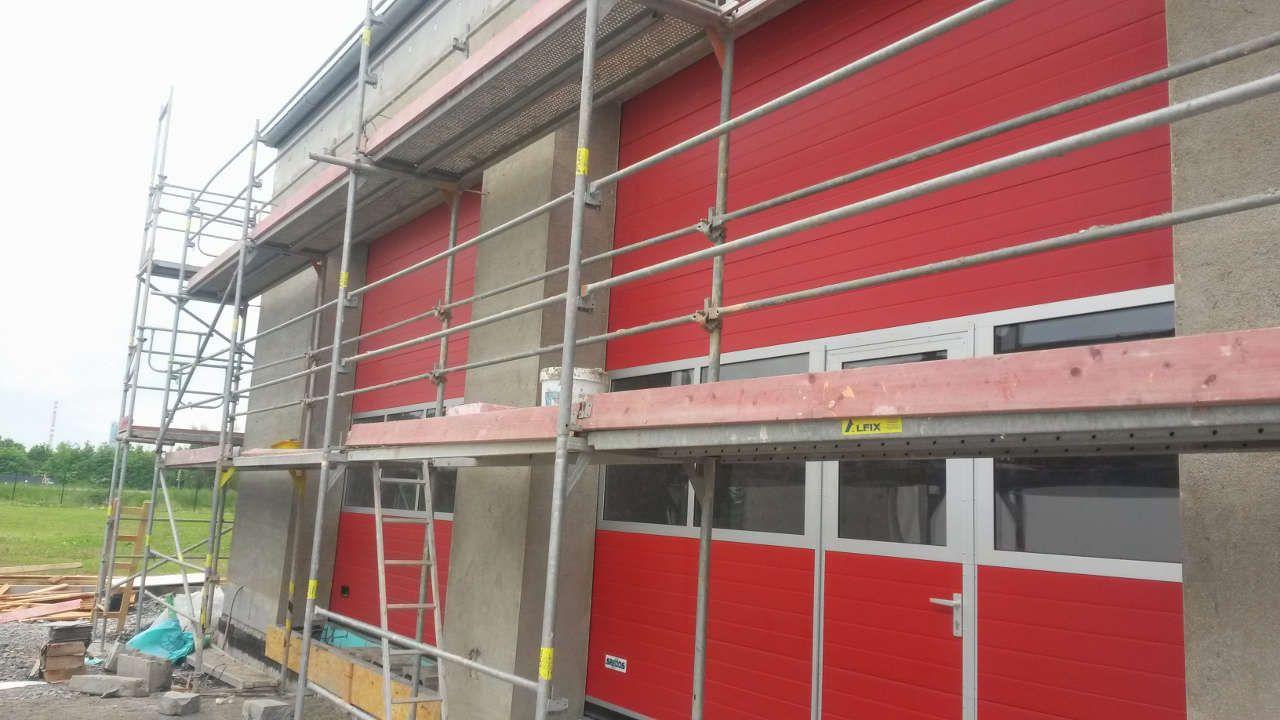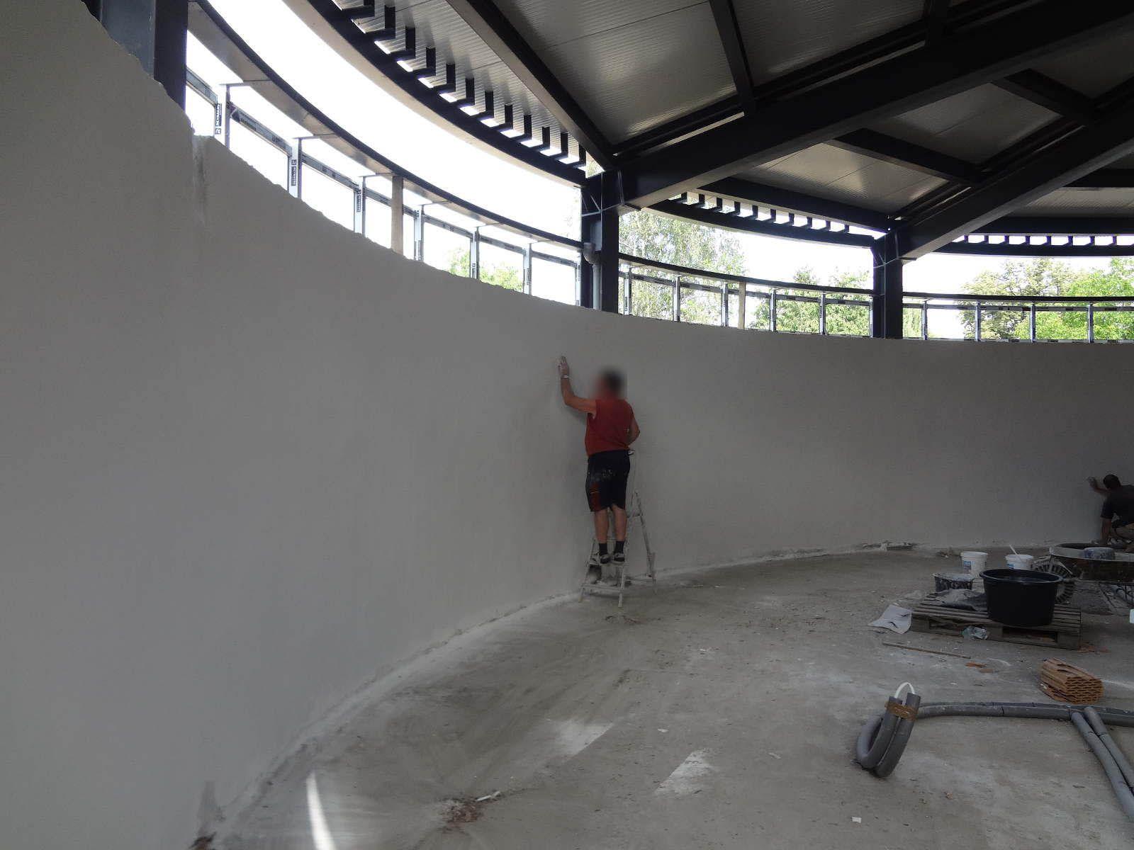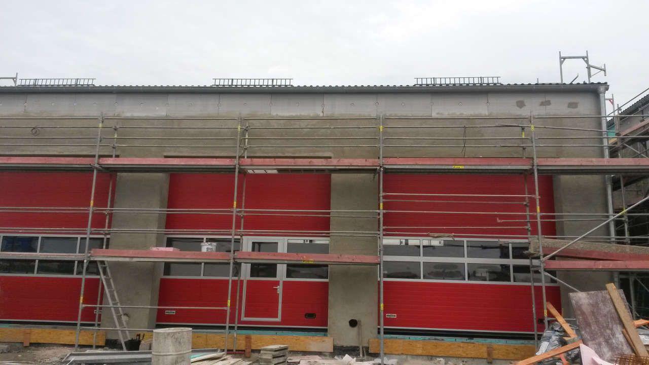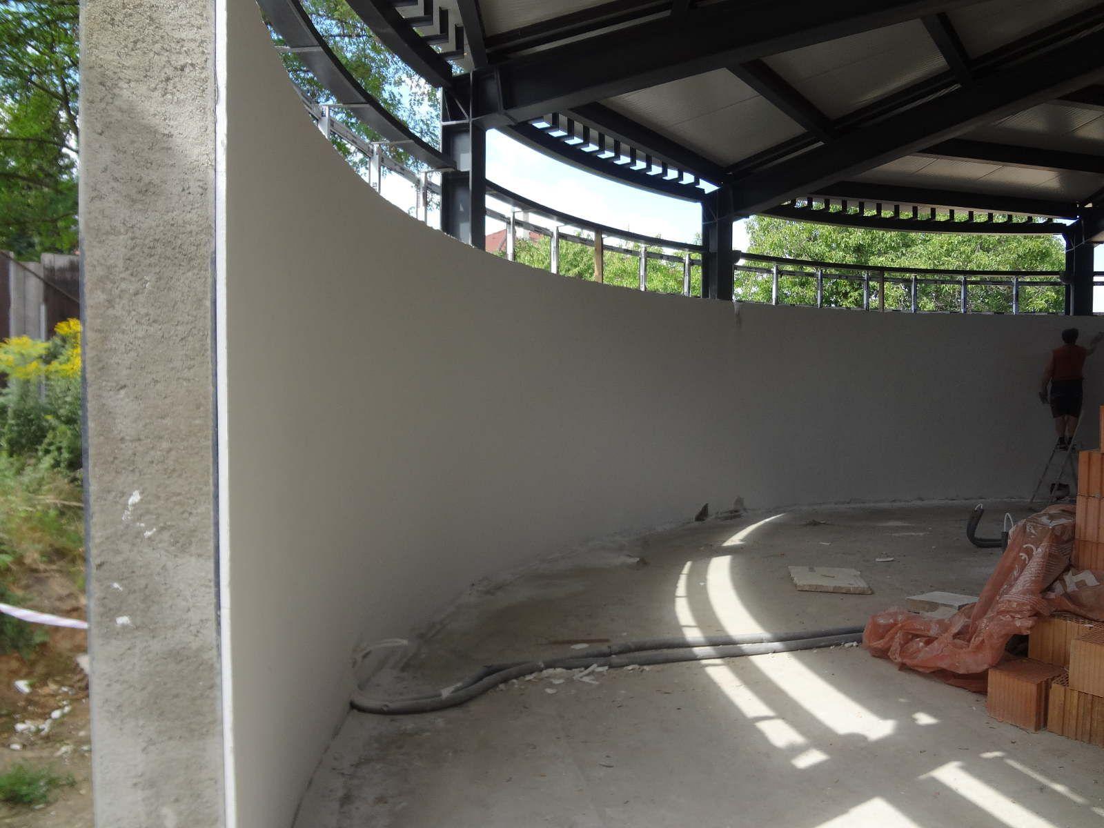 Realizace strojní jádrové omítky na požární stanici v Lovosicích. Velikost stropů cca. 250 m2, stěn 2500 m2.