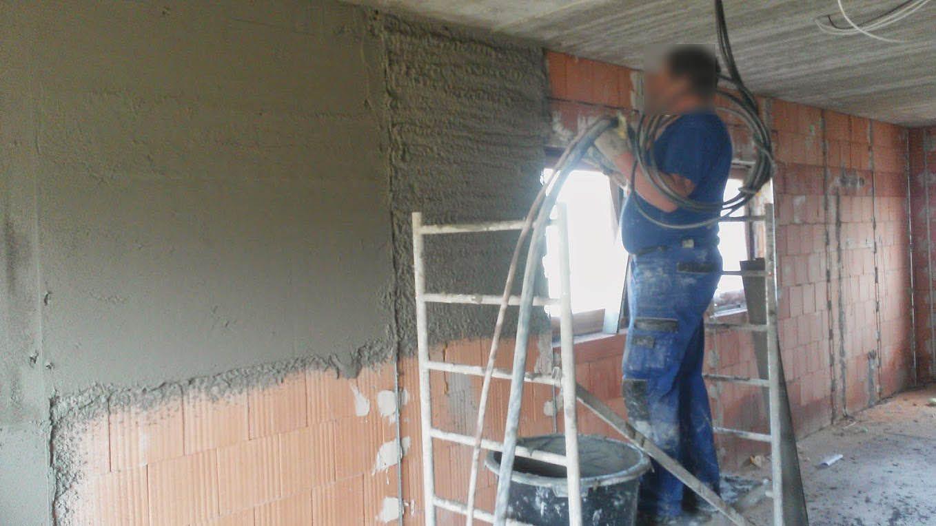 Realizace strojní jádrové omítky v rodinném domě v říjnu 2014. Použitý materiál: KVK 0610, Plocha: 350 m2 Doba aplikace: 10 dní.