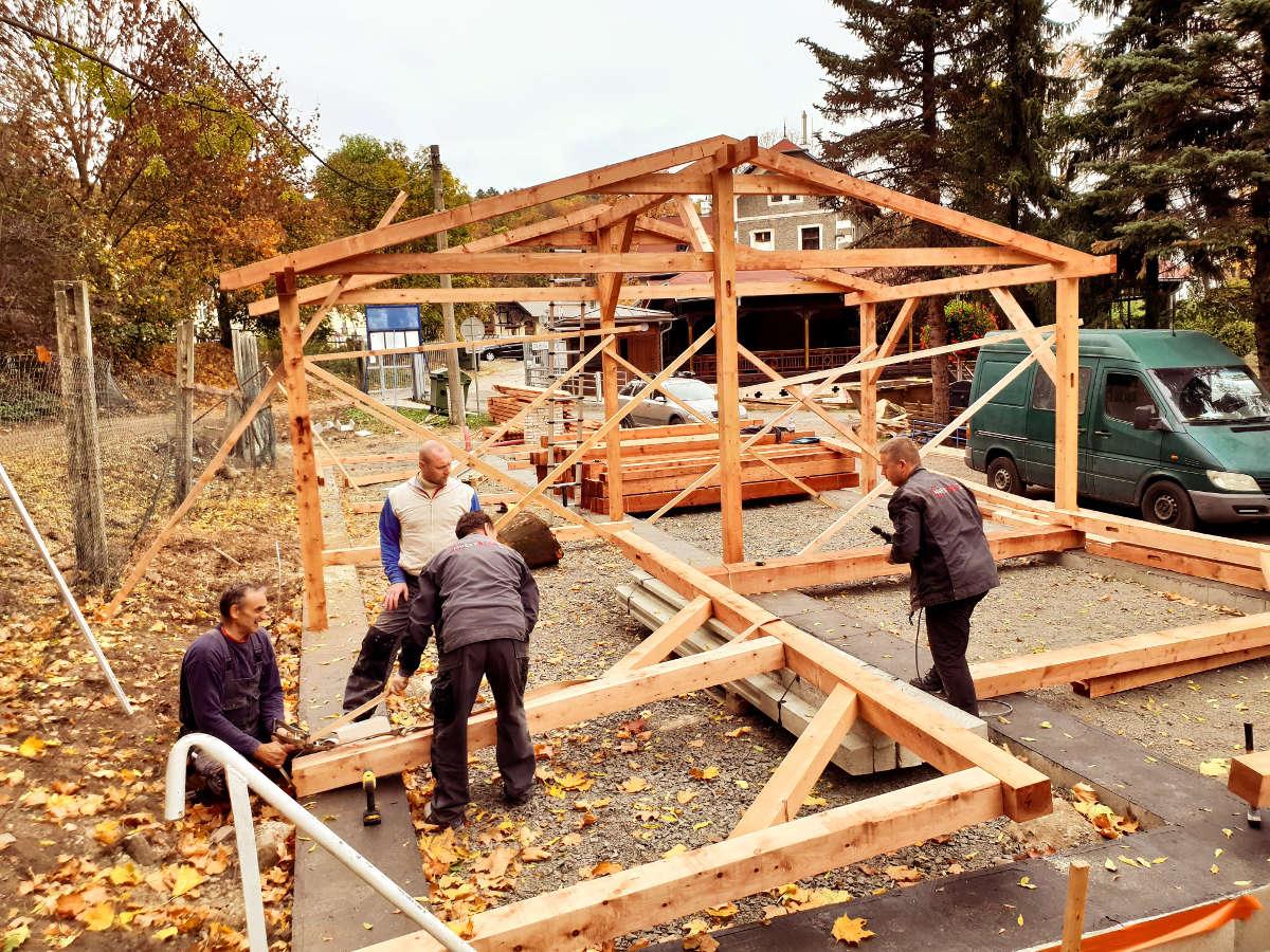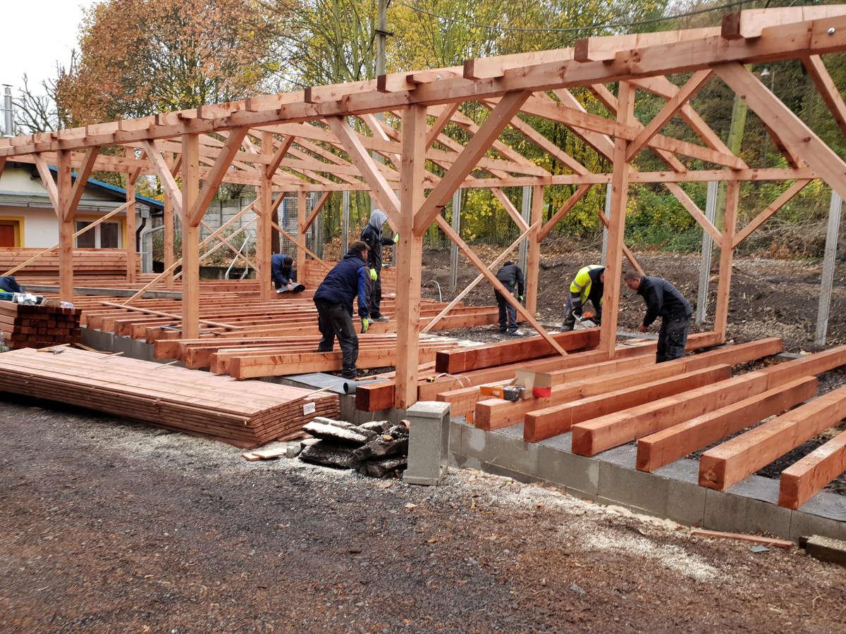 Nosné konstrukce byly vytvořeny z dřevěných hranolů, profilů 140/140, 100/100, 160/200 a 100/200 mm, které najdete na našem eshopu.